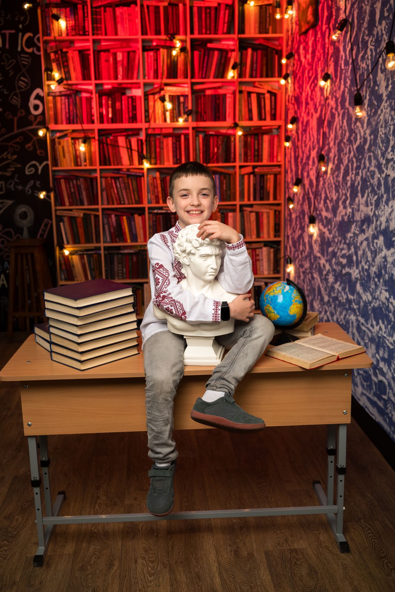 Якщо фон не буде узгоджений, ми проведемо фотосесію на класичному фоні «бібліотека».